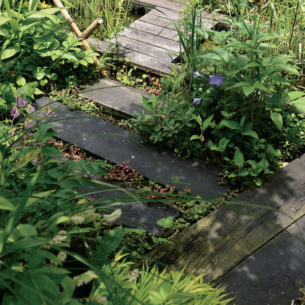 野の花司では、ベランダや屋上など緑の少ない都会で、野草や雑木を使った自然に親しむ空間づくりをご提案しています。