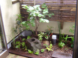 ■鉢植え樹木/木製デッキ(パネル式)/手水鉢/景石/他(砂利は既存のものを使用)